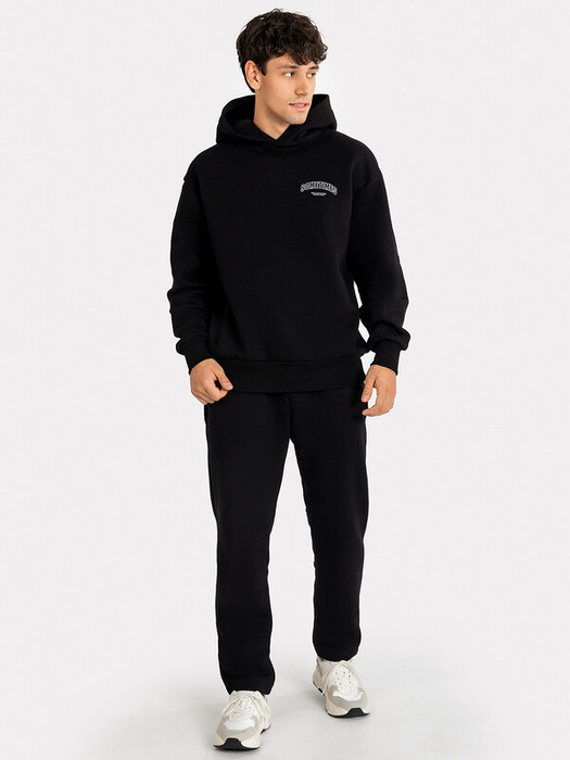 Мужское худи свободного силуэта из трикотажного футера с теплым подчесом. Круглая горловина с капюшоном, длинные рукава на манжетах, слегка спущенная линия плеча, пояс из рибаны – худи удачно сочетает комфортный дизайн и отличное качество!