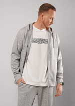Мужское худи свободного силуэта из трикотажного футера с теплым подчесом. Круглая горловина с капюшоном, длинные рукава на манжетах, слегка спущенная линия плеча, пояс из рибаны – худи удачно сочетает комфортный дизайн и отличное качество!