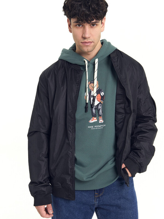 Мужское худи свободного силуэта из трикотажного футера без подчеса. Круглая горловина с капюшоном, длинные рукава на манжетах, слегка спущенная линия плеча, пояс из рибаны – худи удачно сочетает комфортный дизайн и отличное качество!