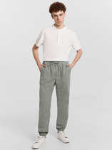 Брюки прямые, свободные. Пояс отрезной с эластичной тесьмой внутри. С внешней стороны пояса пробиты петли и втянут шнур (8КXW-1 8мм) с узлом на концах. В боковых швах обработаны карманы, подкладка кармана из основного полотна. На левой передней половинке проложена декоративная строчка - имитация гульфика. На задней правой половинке накладной карман. Нижние срезы брюк обработаны швом вподгибку с эластичной тесьмой внутри.