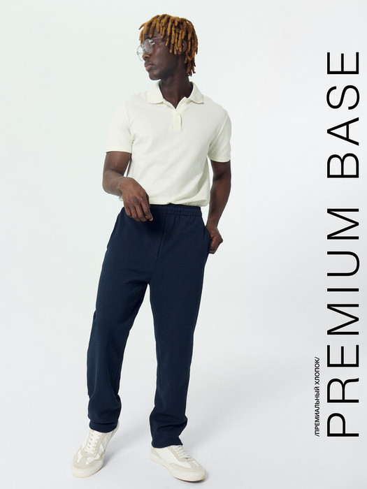 Длинные мужские брюки с классической линией талии, выполненные из интерлока. Силуэт прямой, штанины немного заужены к низу. В поясе – эластичная тесьма и регулировочный шнурок-завязка. Есть удобные боковые карманы. Стильно!