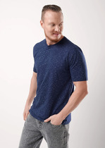 Нижние срезы футболки и рукавов обработаны швом вподгибку.