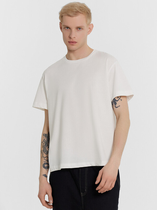 Нижние срезы футболки и рукавов обработаны швом вподгибку.