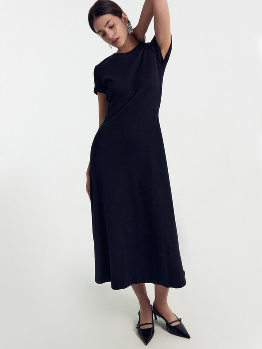 Платье миди женское полуприлегающего силуэта из эластичного полотна - рибаны.