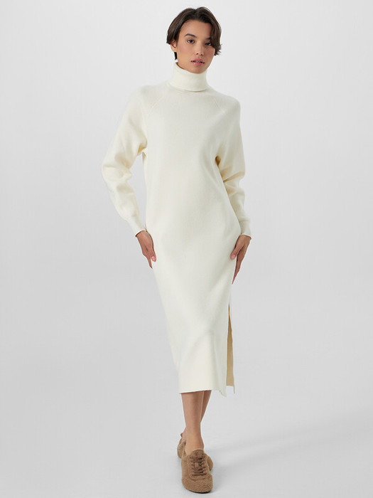 Женское платье с длинными рукавами — элегантная модель для прохладного сезона. Высокий воротник-стойка не только эффектно обрамляет шею, но и надежно защищает холода. Длина ниже колен и рукава, зауженные на манжетах, создают утонченный, вытянутый силуэт. Стильный вырез на левом бедре — вносит в образ ноту современности.