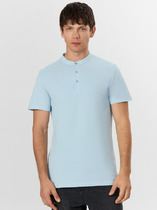 Перед с застежкой "поло". Верхняя планка цельнокроеная. Застежка на 2 петли и пуговицы.