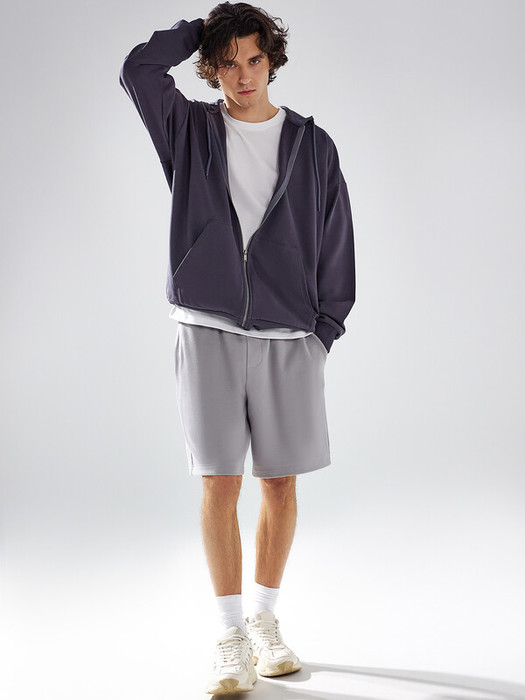 Шорты прямые, посадка средняя. Пояс цельнокроёный с эластичной тесьмой внутри. По переду пробиты петли и втянут шнур с застроченными концами. На левой детали переда имитация гульфика.  По переду карманы с отрезными бочками. Нижние срезы шорт обработаны швом вподгибку.