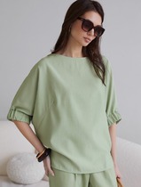 22.03 Vilatte Блузка прямого силуэта D29.226 голубой-белый