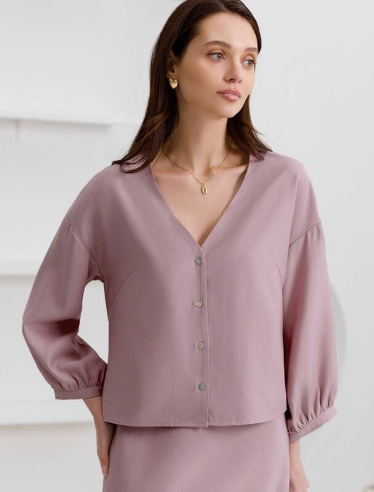 Элегантная укороченная блузка темно-синего цвета выполнена из плотного лиоцелла. Лиоцелл это более дорогой и экологичный вариант вискозы, очень прочный и шелковистый. Ткань отличается от регулярной коллекции из лиоцелла - она содержит еще больше лиоцелла (92%), благодаря чему имеет более нежную шелковистую фактуру. Модель дополнена объемными рукавами длиной 7/8, создающими модный акцент. Укороченная передняя часть блузки выгодно подчеркивает линию талии, а удлиненная спинка обеспечивает комфорт. Этот асимметричный фасон придает образу динамичности, а V вырез визуально вытягивает силуэт. Свободный крой романтиной блузки не сковывает движений и отлично садится по фигуре даже на большие размеры, скрывая возможные недостатки. Эта легкая блузка с застежкой на пуговицы идеальный выборо для комфорта и стиля в теплое время года, она идеально адаптируется под любой повод.