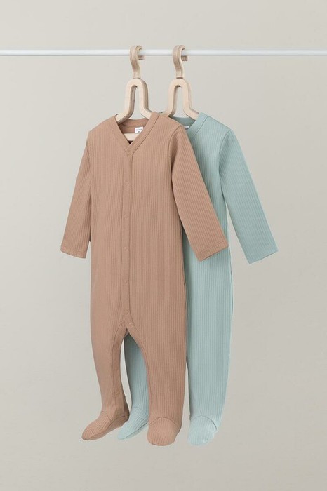 Комбинезоны для новорождённых из мягкого эластичного трикотажа, произведённого из натурального хлопка. В упаковке 2 штуки. Застёгиваются спереди на кнопки. В размере 56 на рукавах предусмотрены антицарапки, швы выполнены наружу. Все трикотажные полотна производятся в соответствии с нормами Швейцарского сертификата ЭкоТекс.