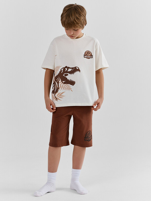 Этот домашний комплект для мальчиков — удобный и практичный выбор для отдыха и сна.  Футболка свободного силуэта обеспечивает комфортную посадку. Круглая горловина с обтачкой из рибаны добавляет мягкости и эластичности, обеспечивая удобство при носке. Свободные рукава и слегка спущенная линия плеча создают расслабленный силуэт, а обработка низа рукавов и футболки швом в подгибку делает изделие аккуратным и долговечным. Шорты ниже колена свободного силуэта и с высокой посадкой на талии обеспечивают максимальное удобство, создавая ощущение свободы движений. Эластичный пояс мягко фиксирует изделие, а обработка низа шорт швом в подгибку делает модель надежной и устойчивой к износу. Этот комплект из натурального хлопка идеально подходит для домашних образов, сочетая комфорт, практичность и стиль!