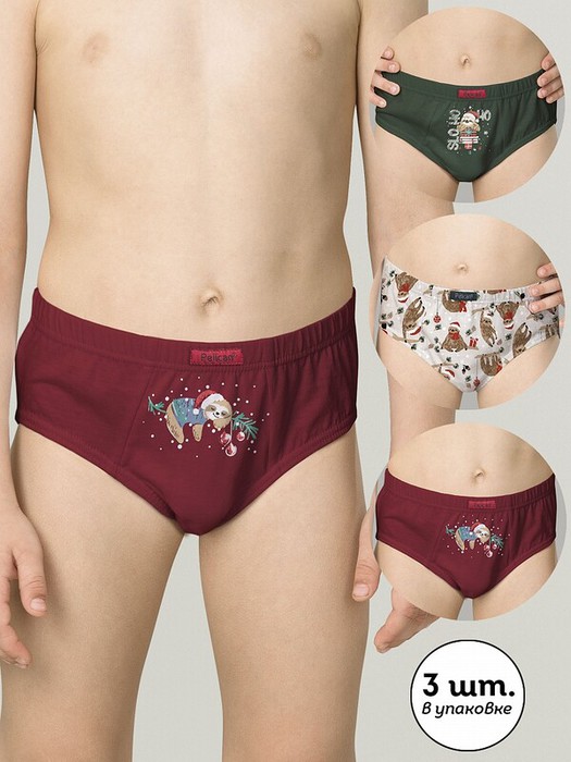 Детские трусы слипы для мальчика из 100% хлопка с новогодним принтом, набор 3 штуки. Составляя детский гардероб, очень важно подобрать комфортные и удобные трусы для детей и подростков для повседневной носки на каждый день и сна. Трикотажные детские трусики слипы для подростка с эластичной резинкой по талии надежно держатся на теле ребенка, не скручиваются, не закатываются и не сползают, а дышащая ткань позволяет избежать натирания нежной кожи. Плотная, но свободная модель и средняя посадка не сковывают движения парня, что важно маленьким детям. Милое и практичное детское нижнее белье порадует родителей долговечностью. Хлопковые повседневные трусы плавки не боятся многочисленных стирок, не растянутся и не полиняют. Детская одежда для мальчиков должна отвечать моде, комплект трусы для малыша представляет только молодежные цвета, которые порадуют и поднимут настроение современному мальчику.