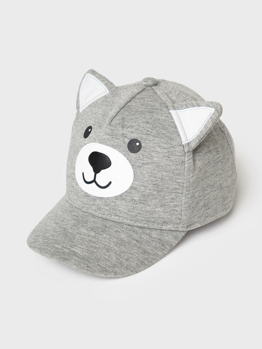 Детская бейсболка для мальчика. Выполнена из мягкого хлопкового трикотажного полотна. Классическая форма с изогнутым козырьком. Главная особенность дизайна — лицо животного на передней части и объёмные ушки, пришитые сверху. На затылке — удобная эластичная резинка, которая помогает лучше фиксировать кепку на голове. Есть небольшие отверстия для вентиляции.