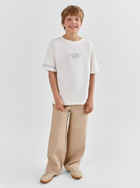 Брюки зауженные из трикотажа джерси для мальчика. Пояс с еврорезинкой сзади. На передней части брюк боковые карманы, горизонтальные защипы и застёжка - гульфик на молнии. На правой задней половинке брюк - карман с узкой листочкой. Отличный вариант на каждый день.
