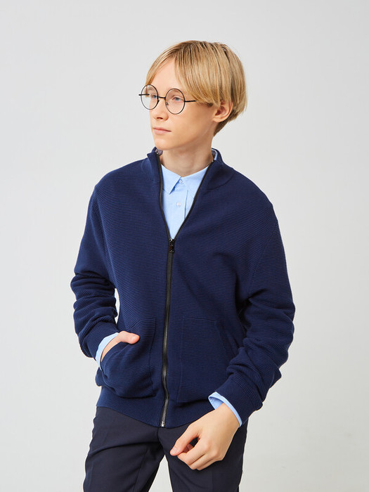 Стильный вязаный кардиган из 100% хлопка премиального качества на молнии. Манжеты, ворот и низ изделия оформлены фактурной резинкой.Модель дополнена накладными карманами.