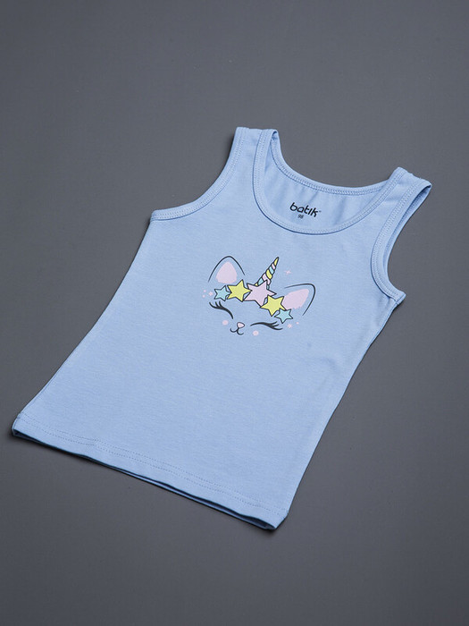 Детская майка для девочки в нежном голубом цвете. Воздушная и комфортная майка на широких бретелях, созданная из премиального супрема пенье.