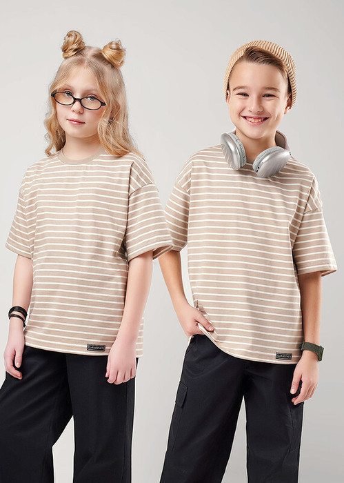 Футболка из хлопкового трикотажного полотна в трендовую набивку - ""полоска"" прекрасно дополнит твой гардероб. Отличное решение для создания класссного и комфортного образа на каждый день, как для девочек, так и для мальчиков !
