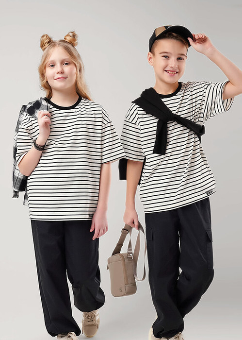 Футболка из хлопкового трикотажного полотна в трендовую набивку - ""полоска"" прекрасно дополнит твой гардероб. Отличное решение для создания класссного и комфортного образа на каждый день, как для девочек, так и для мальчиков !
