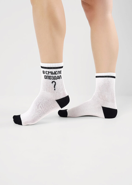 Носки для мальчика и девочки с выделенным мысом и пяткой с надписью на паголенке В смысле опоздал?