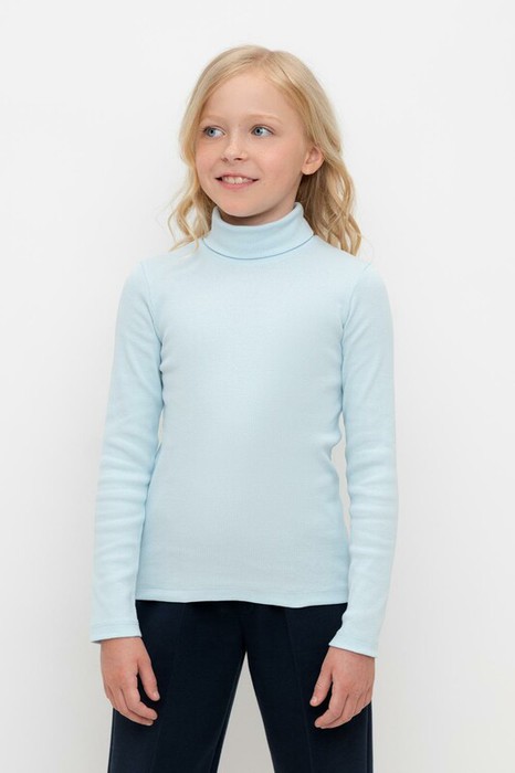 Водолазка для девочки с длинным рукавом и воротником с отворотом в рубчик. Мягкий материал изделия приятен к телу и хорошо тянется. Все трикотажные изделия производятся в соответствии с нормами швейцарского сертификата ЭкоТекс.