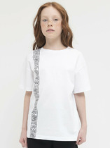 Футболка свободного силуэта. Перед и спинка футболки цельнокроеные. Рукава короткие втачные. Линия плеча спущена. Горловина круглой формы, обтачка из трикотажного полотна рибаны. Шов втачивания рибаны по спинке закрыт бейкой из основного полотна. Низ футболки и рукавов обработан швом в подгибку.