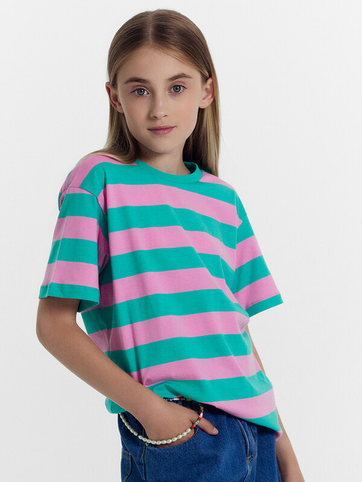 30.03 Mark Formelle ФУТБОЛКА ДЛЯ ДЕВОЧЕК 117915 117915 розовая полоска на бирюз
