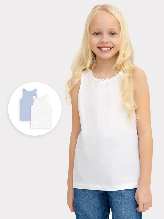 Майка для девочки классическая мультипак (2 шт.) на широких бретелях. Стильные и лаконичные майки бельевые для девочки выполнены из высококачественного хлопка. Силуэт полуприлегающий. Длина до середины бедер. Вырез горловины круглый. Ткань гипоаллергенная и безопасная для детского здоровья. Топ майки для девочки хорошо сидят и не стесняют движения ребенка, очень уютные. Отлично подходят на любой сезон года. В теплое время года нательные майки для девочки можно носить дома или во время сна как самостоятельную вещь, а в прохладное время - под теплой одеждой. Прекрасно подходят на каждый день, в садик, для прогулок и занятий спортом. Новогодние майки детские идеальный вариант для праздничных дней и утренников. В линейке много интересных моделей с принтами и рисунками. Каждая модница выберет свой вариант. Отличный подарок для детей от Mark Formelle!