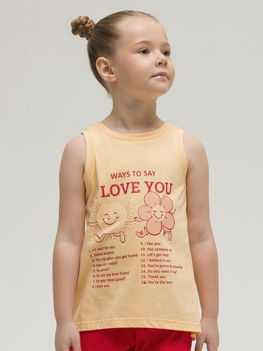 Легкая, летняя майка для девочек - базовая модель на каждый день. Выполнена из 100% хлопка, материал не вызывает аллергии, а тело ребенка всегда дышит. Изделие трапецевидногоо силуэта, перепад по низу делает майку интересной. Акцентный текстовый принт в сочетании забавными персонажами задают настроение и привлекают внимание. Майку можно сочетать с любым низом, создавая модные образы. Это идеальная повседневная одежда для девочек для жаркого лета.