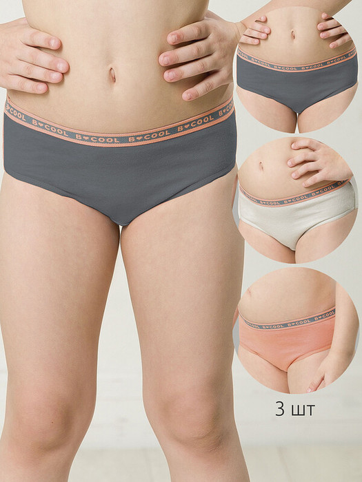 24.03 Pelican Трусы для девочек GULB3298(3) Светло-серый/персиковый/изумрудный