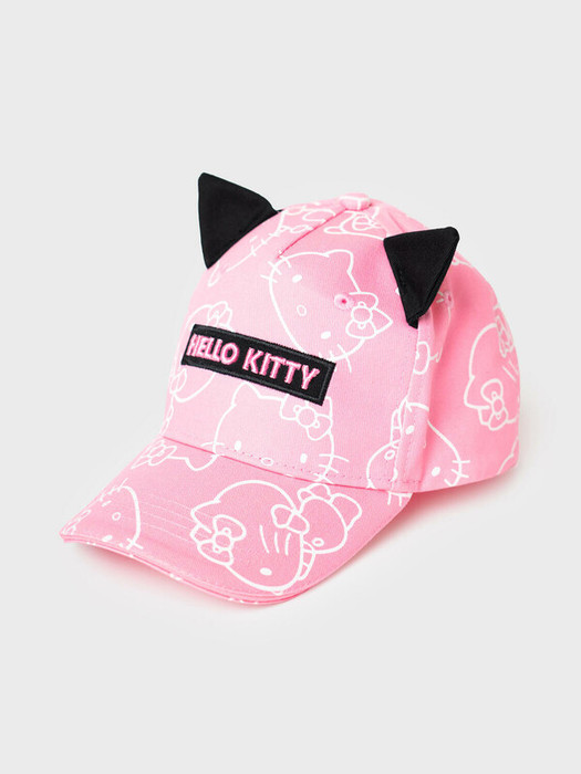 Детская бейсболка для девочки. Модель с ушками и принтом Hello Kitty. Выполнена из розовой ткани с белыми рисунками персонажа и украшена чёрной нашивкой с розовой надписью. Изюминка дизайна - текстильные ушки на верхней части. Козырёк изогнутый. Объём регулируется с помощью пластиковой застежки на кнопки сзади. Вентиляционные люверсы и плотная конструкция делают кепку удобной и практичной.