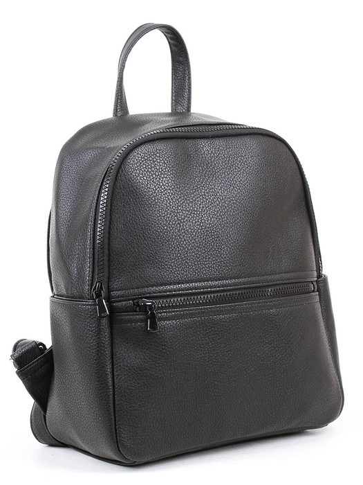 Легкий современный женский рюкзак на молнии. Вмещает формат А4. По бокам - открытые плоские карманы. На передней и задней стенке - карман на молнии. Внутри два открытых кармана и карман на молнии. Высота ручки 9 см. Наплечные ремни регулируются по длине.