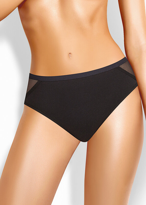 Трусы слипы женские из плотного эластичного хлопкового полотна. Обработка краев по талии - жаккардовая резинка, по ноге переда - внутреняя резинка ,по ноге спинки - полуокантовка. Спинка из сетки переходящая бочком на перед