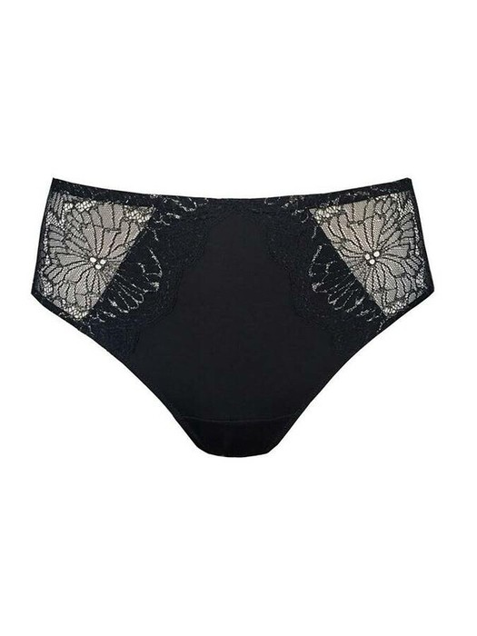 Трусы из серии Satin выполнены из тончайшего эластичного кружева с металлизированной нитью иэластичного шелковистого полотна с деликатным блеском. Торжественное звучание модели придает сияние люрекса и благородная цветовая гамма.