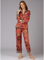 Эта пижама состоит из топа и шорт. Выполнена в светлом бежевом оттенке с нежным принтом.