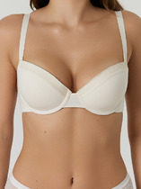 Бюстгальтер мягкий из эластичной сетки, без каркасов. Чашка с вытачкой. Низ обработан широкой бейкой из основного полотна с эластичной тесьмой внутри, с отделочной строчкой контрастными текстурированными нитками. Передний срез и проймы чашки обработаны с контрастной строчкой текстурированными нитями и жилкой по изнаночной стороне. Передняя часть бретели выворотная из основного полотна с жилкой внутри. Надставки бретелей по спинке из бретелечной тесьмы с регулировкой. Кольца-регуляторы. Застежка двойная.