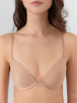 Бюстгальтер с жесткими формованными чашками с эффектом «пуш-ап (АС-50.18М), на каркасах тип 2, из микрофибры. Деталь чашки с подформовкой, обтачная по верхнему и боковому срезам. Ластовица на подкладке из монокапрона. По верхнему и нижнему срезам бочков настрочена эл тесьма 10 мм (жесткая б/зуба WTWE1-10, Артекс E7185) в 2 приема. Надставки бретелй выполнены из микрофибры с эл тесьмой 10 мм внутри (бретель SWE3-10, Артекс Е0001). Бретель  (бретель SWE3-10, Артекс Е0001) с регулировкой по длине. Кольца-регуляторы пластик 10 мм (металл по заданию). Застежка крючки-петли 28 мм.