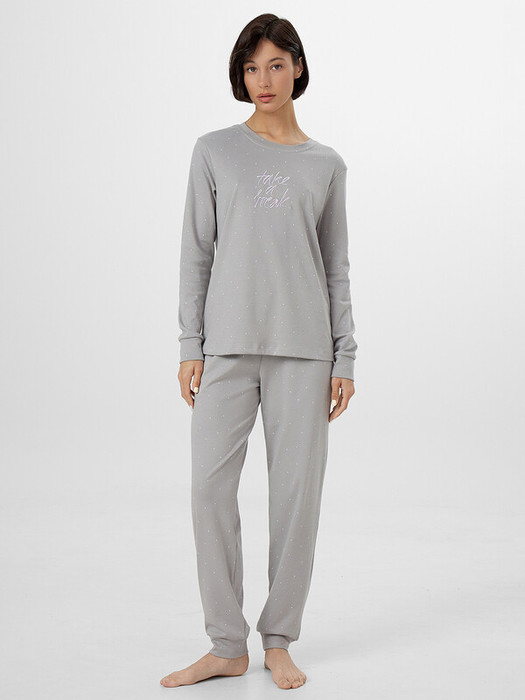 Подарите себе уют и комфорт с женской пижамой от Mark Formelle. Модель, выполненная из высококачественного хлопка, станет отличным вложением в ваш гардероб. Джемпер свободного силуэта с круглой горловиной создаёт нежный и элегантный образ. А прямые брюки с эластичным поясом идеально садятся по фигуре, не сковывая движений и дарят чувство лёгкости и свободы. Эта мягкая и комфортная пижама идеальна для сна, отдыха и домашних дел. Она сочетает в себе стиль и функциональность, позволяя вам выглядеть прекрасно в любой ситуации. Добавьте в свою коллекцию этот прекрасный комплект, который подарит вам тепло и уют в прохладные вечера.