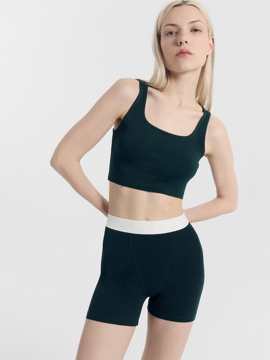 Комплект женский состоит из топа и шорт. Топ прилегающего силуэта. Перед и спинка цельнокроенные. Горловина формы каре. Горловина и проймы обработаны в чистыфй край, нижний срез обработан швом в подгибку. Шорты облегающего силуэта. По переду декоративная отрезная деталь, имитация "гульфика". По верхнему срезу настрочена жаккардовая эластичная тесьма. Нижние срезы обработаны швом вподгибку.