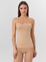 Топ женский из рибаны, силуэт прилегающий. Верхний край переда и спинки обработан кружевом 1,5 см (код L56-1,5 см, артикул L20166). Бретели из основного полотна, внутри жилка 6 мм (WT4-6, девсель 13460W). Нижний срез обработан швом вподгибку.