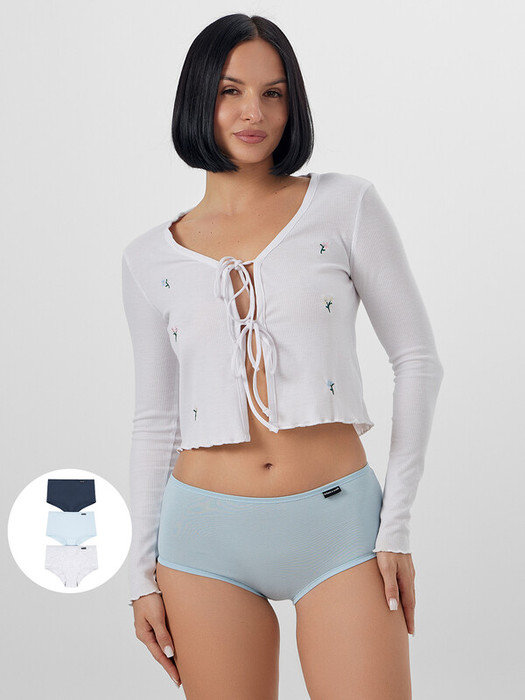 Женские трусы шорты мультипак (3 шт.) — это лучшее сочетание удобства и стиля. Изготовленные из высококачественного хлопка, они обладают отличными дышащими свойствами, обеспечивают комфорт на протяжении всего дня. Мягкая ткань бережно облегает кожу, не вызывая дискомфорта, препятствуя натиранию. Классический крой шортиков идеально подходит для повседневной носки. Они дарят свободу и уют. Стильный дизайн и разнообразие расцветок в наборе шортиков позволят вам выбрать идеальные для любого настроения. От классических оттенков до ярких принтов — каждая модель добавит индивидуальности вашему образу. Широкий размерный ряд. Рекомендуем!