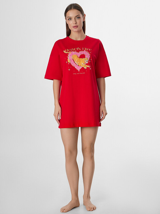 Свободный крой не сковывает движений, позволяя заниматься повседневными делами или отдыхать. Рукава со спущенной линией плеча и круглый вырез горловины создают расслабленный силуэт. Модель идеально подходит для сна, утреннего кофе или неспешного отдыха.