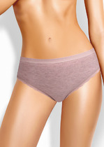 Трусы - слипы со средней линией талии и узкой боковиной. Практически полностью закрывают ягодицы.  Выполнены из высокогигиеничного хлопка, который отлично пропускает воздух, впитывает влагу, не подвержен деформации и пилингу, приятно прилегает к телу и подходит даже для самой чувствительной кожи. Края обработаны мягкими эластиками с кружевными фестонами.