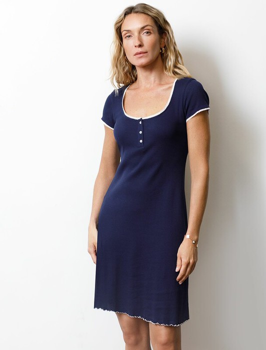 Платье темно-синего цвета длины мини из эластичного трикотажа кашкорсе создано для современных женщин, ценящих красоту и удобство. Крой выгодно подчеркивает фигуру и создает женственное настроение в образе. Благодаря отделке нежным кружевом платье выглядит по-особенному романтично и изысканно. Трикотаж кашкорсе обеспечивает комфортное ощущение в течение дня как дома, так и на отдыхе. Это красивое платье подойдет для домашних встреч с друзьями или спокойного вечера в кругу семьи. Мягкая ткань трикотажа приятна на ощупь и создает ощущение уюта. Любое движение свободно благодаря эластичному составу, который помогает сохранить форму даже после долгой носки. Дополнительной деталью становятся пуговицы, придающие платью лаконичность и интересный акцент.