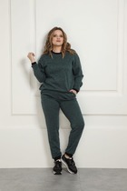 Брюки прямые, широкие из трикотажного полотна пике. По талии притачной пояс на резинке. Боковые карманы в отрезном бочке.