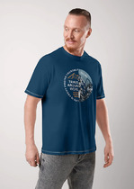 Мужская стильная футболка увеличенного объема. Модель с круглой горловиной из хлопкового полотна. Акцент изделия- крупный авторский принт и контрастные отделочные строчки, что придает ей оригинальности. Идеально подойдет для прогулок с друзьями.