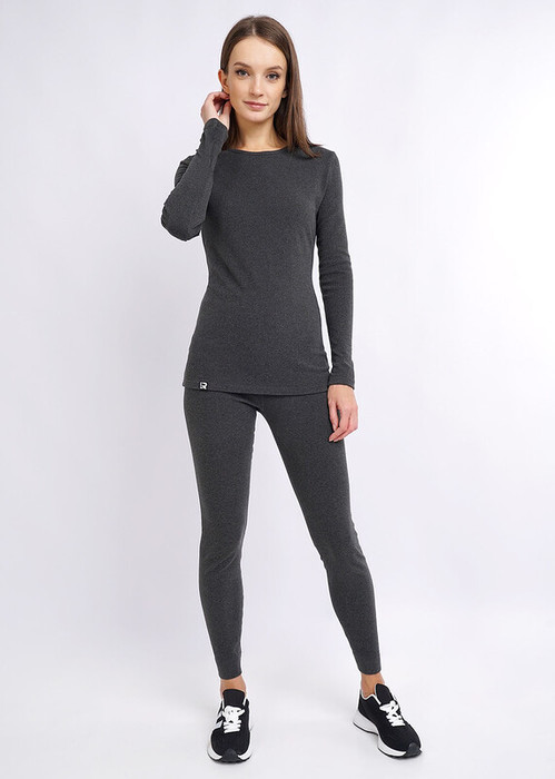 Согревающий комплект из рибаны с карбоном и эффектом меланжа. Благодаря своему крою изделие плотно прилегает к телу, не сковывает движений и подчеркивает силуэт.Низ джемпера украшает жаккардовая нашивка с силиконовой печатью. Леггинсы плотно облегают бёдра и ноги по всей длине. Без боковых швов и цельнокроеным поясом с эластичной резинкой внутри.
