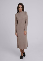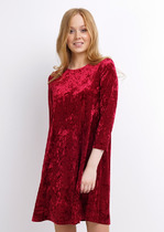 Бархатное платье простого покроя, расклешённое книзу с втачным рукавом длиной 3/4. По спинке застёжка на пуговицу.