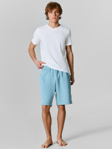 Шорты изготовлены из трикотажного полотна футера 3-х нитки 87%хб, 13%пэ, 260г/м2 .