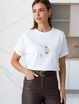 Женская футболка с принтом среднего объёма с коротким прямым рукавом. Вырез горловины обработан окантовкой. Изделие неприхотливо в уходе. Хлопковая футболка женская украшена принтом + актуальной аппликацией из мелких страз. Шрифты в трендовом университском стиле + цветы. Надписи переводятся: «креативное пространство», «я отрицаю вашу реальность и создаю свою собственную!». Принт и аппликация устойчивые, прочные, хорошо переносят многочисленные стирки. В составе ткани преобладает высококачественный хлопок — майка мягкая, воздухопроницаемая, приятная на ощупь. Футболка с надписями выполнена в трендовых и при этом универсальных цветах, которые отлично сочетаются с различными брюками, шортами. Футболки с принтом женские подходят также девушкам, девочкам-подросткам. Хлопковая футболка идеальна для любого времени года, её можно носить как летом, так и в холодное время года в качестве среднего слоя одежды, а также на спорт. Помните о правильном уходе за изделием: рекомендуется стирать при температуре не выше 30 °C, без предварительного замачивания, с изнанки. Это поможет сохранить качество и цвет футболки на длительное время.