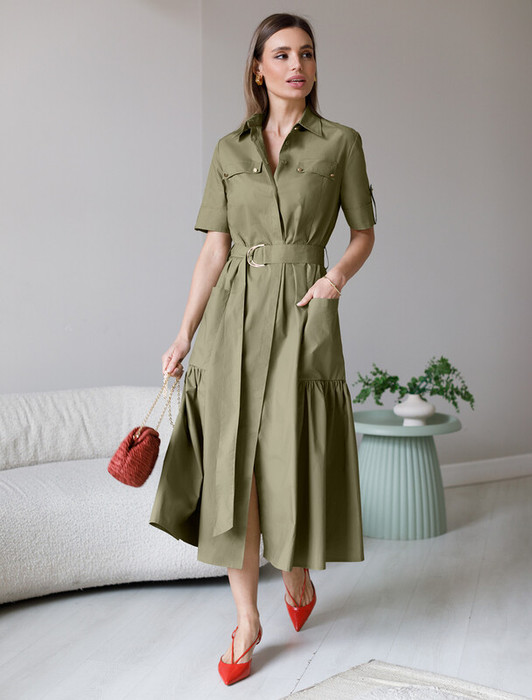 Совместные покупки Симферополь Женская одежда Платья — 27.03 Vilatte Платье из легкого хлопкового поплина D22.206 светло-оливковый